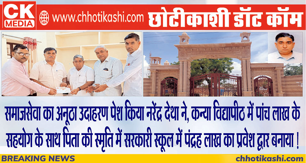 जोधपुर (सीके मीडिया)। भारत के नक्शे पर अपनी विशिष्ट पहचान रखने वाला मारवाड़ का सुप्रसिद्ध आदर्श गांव बोरूंदा साहित्य, कृषि और समाज सेवा का त्रिवेणी उदाहरण प्रस्तुत कर रहा है। जहां साहित्य के पदमश्री विजय दान देथा, कृषि में पदमश्री चंडीदान देथा जन्मे हैं और अब उसी गांव के युवा समाजसेवी नरेंद्र देथा ने आज के विकट आपाधापी और मानवीय मूल्यों के कम होते समय में समाज सेवा का अनूठा उदाहरण प्रस्तुत कर आने वाली पीढियों के लिए एक आदर्श प्रेरणा पुरूष बन गये हैं। पूर्व सरपंच बोरुंदा नरेन्द्र देथा ने आज नागौर की श्रीकरणी कन्या विद्यापीठ में पधारकर रुपए पांच लाख का सहयोग कर संस्थान की आजीवन सदस्यता ग्रहण कर संस्थान को अनुगृहीत किया। देथा द्वारा पांच लाख रुपए का सहयोग कर कन्या शिक्षा के लिए एक अभिनव उदाहरण भी पेश किया गया है। ग्रामवासी रामसिंह मेहडू ने बताया कि जब देश आजादी का अमृत महोत्सव मना रहा हो और राजस्थान सरकार एवं केंद्र सरकार बेटी बचाओ बेटी पढाओ पर अपना पूरा फोकस किये हुए हों इस वक्त नरेंद्र देथा का बेटी शिक्षा में यह योगदान एक बहुत बड़ा प्रेरणादायक प्रसंग है।