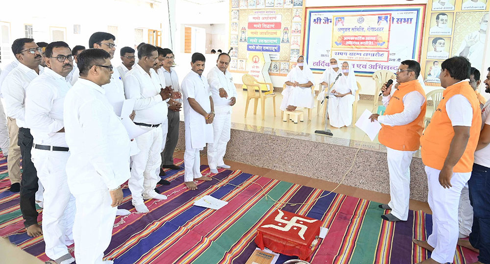 वरिष्ठ जैन संस्कारक और अणुव्रत विश्व भारती सोसायटी के राष्ट्रीय प्रचार प्रसार मंत्री धर्मेंद्र डाकलिया और सहयोगी के रूप में देवेंद्र डागा, विपिन बोथरा ने जैन संस्कार विधि से शपथ ग्रहण करवाया उसके बाद एडवोकेट महेंद्र जैन ने नवगठित कार्यकारिणी को पद एवम गोपनीयता को परंपरागत तौर पर शपथ दिलाई एवम शुभकामना प्रेषित की।