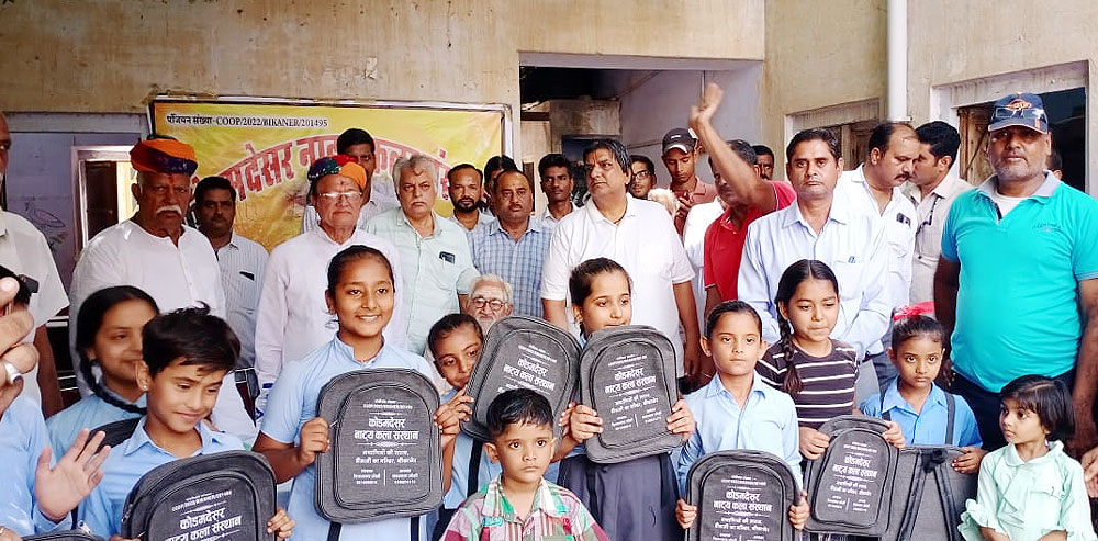 बीकानेर। कोडमदेसर नाट्य कला संस्थान के तत्वावधान में बुधवार को राजकीय बालिका उच्च प्राथमिक विद्यालय, बारह गुवाड़ में स्कूली बैग वितरण कार्यक्रम आयोजित हुआ। अध्यक्षता पं. जुगल किशोर ओझा 'पुजारी बाबा' ने की।