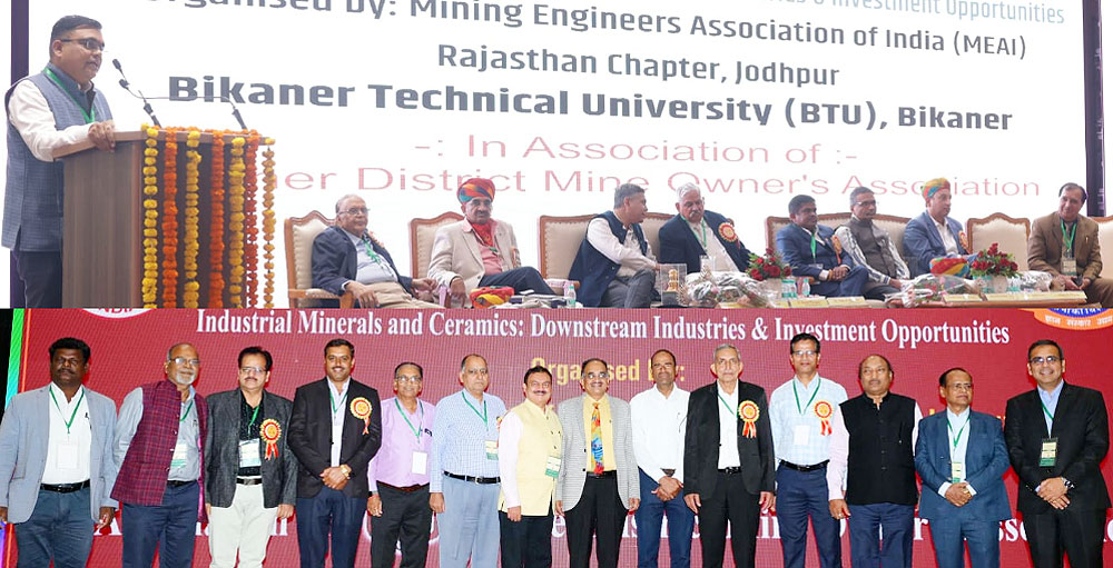 बीकानेर। माइनिंग इंजीनियर्स एसोसिएशन ऑफ़ इंडिया के जोधपुर चैप्टर, बीकानेर डिस्ट्रिक्ट माइन ओनर्स एसोसिएशन तथा बीकानेर तकनीकी विश्वविद्यालय के संयुक्त तत्वावधान में जोधपुर-जयपुर बायपास स्थित रिद्धि सिद्धि रिसोर्ट में आयोजित हो रहा ' औद्योगिक खनिज और सेरेमिक: डाउनस्ट्रीम उद्योग और निवेश के अवसर' विषयक दो दिवसीय राष्ट्रीय सम्मेलन संपन्न हाे गया।